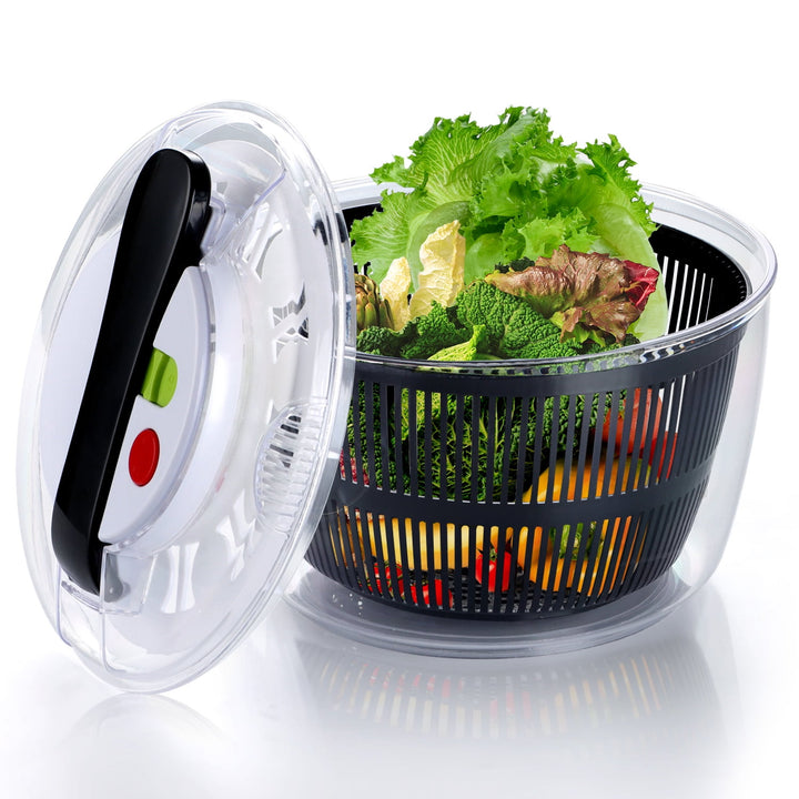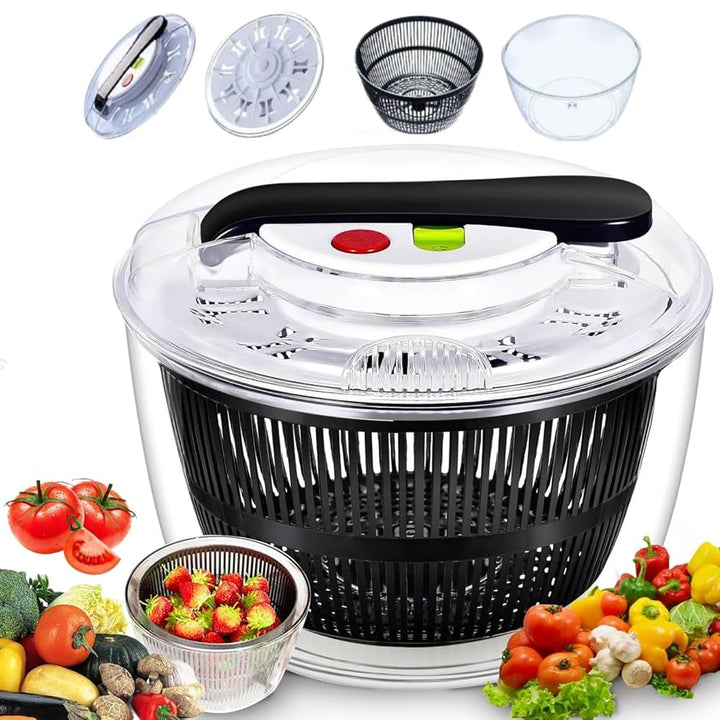 مصفاة الخضروات الدوّارة بسعة 5 لتر هي الأداة المثالية لتحضير السلطات بسرعة وسهولة. بفضل آلية الدوران المبتكرة، يمكنك إزالة الماء الزائد من الخضروات المغسولة بضغطة بسيطة، لتحصلي على خضار مقرمشة وسلطات لذيذة كل مرة.