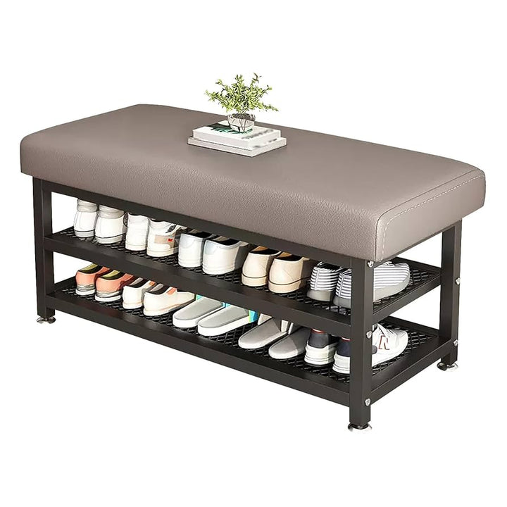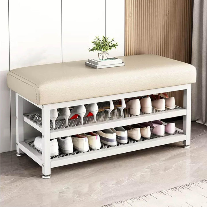 مقعد تخزين أحذية جلدي عصري