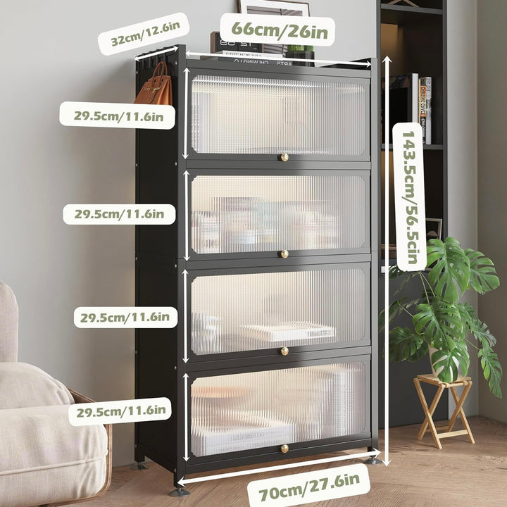 مصنوعة من هيكل معدني قوي مع ألواح PC شفافة مموجة تمنحها مظهراً عصرياً وتحافظ على الأغراض من الغبار.