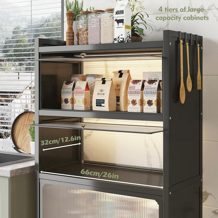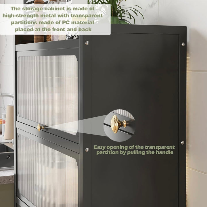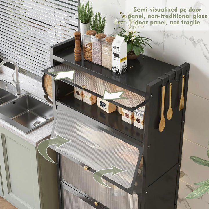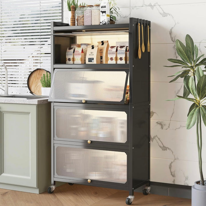 خزانة مطبخ سوداء ٥ طبقات بواجهة شفافة
