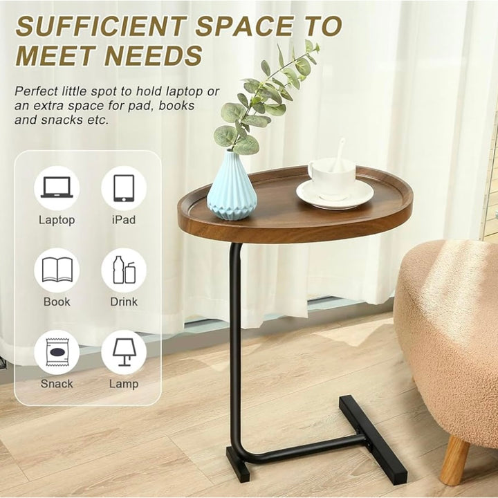 طاولة جانبية أنيقة على شكل حرف C تجمع بين العملية والجمال، مثالية للمساحات الصغيرة. تنزلق بسهولة تحت السرير أو الكنبة لتوفر سطحًا مريحًا لوضع اللابتوب، المشروبات، الوجبات الخفيفة أو المجلات.