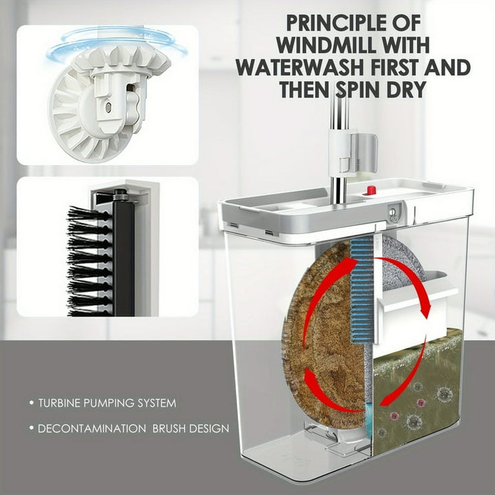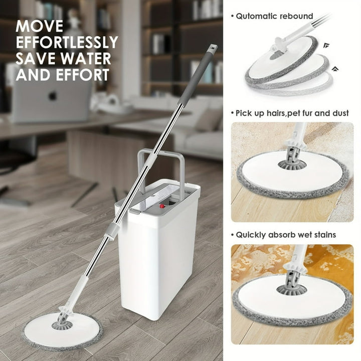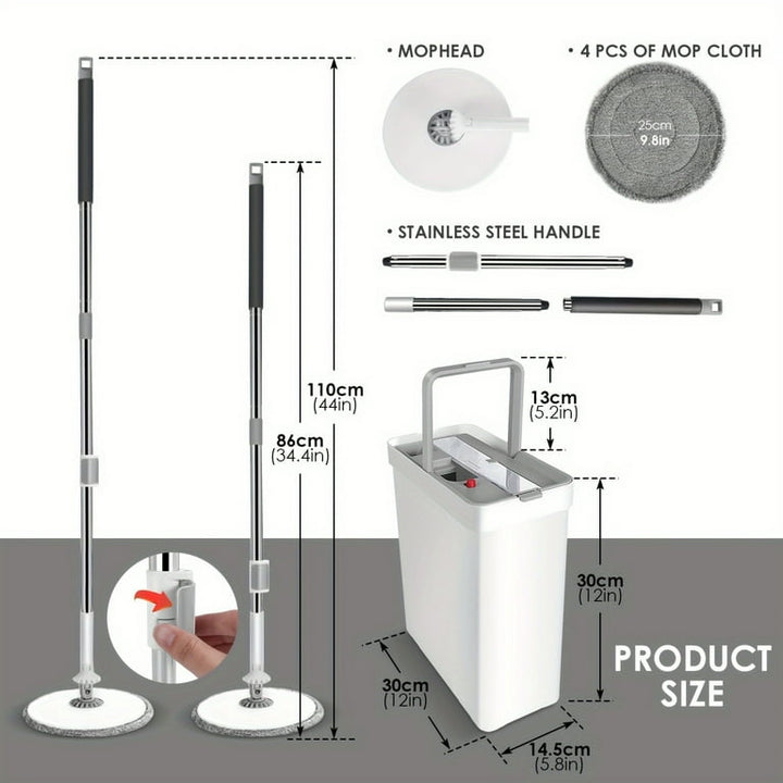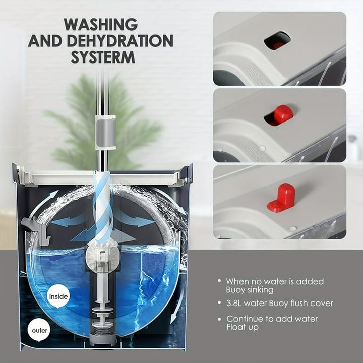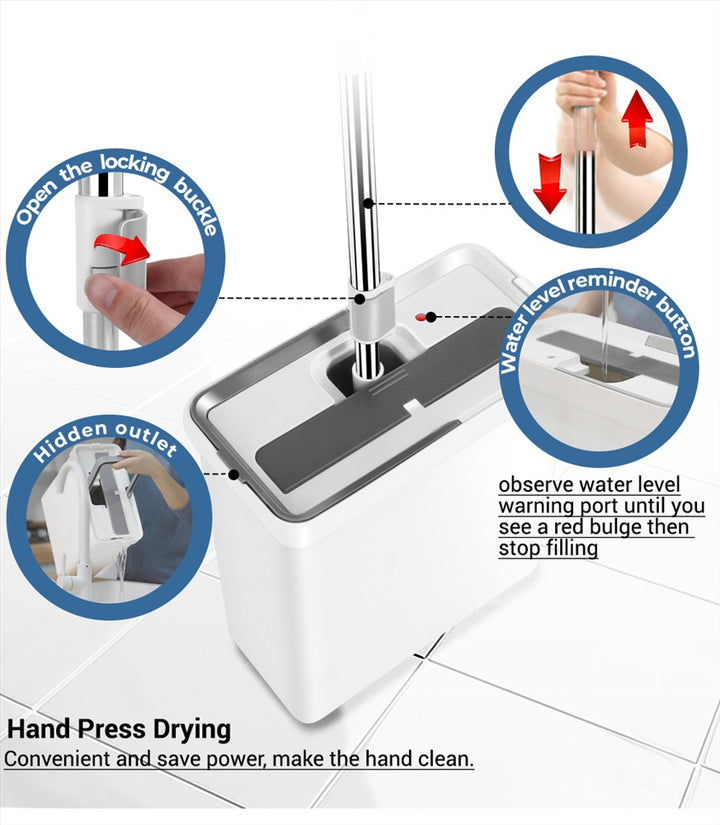 يتميز الدلو بنظام عصر مدمج يسهل إزالة الماء الزائد دون الحاجة لاستخدام اليدين، مما يوفر الراحة والنظافة أثناء التنظيف. مثالية لجميع أنواع الأرضيات مثل السيراميك، الباركيه، الرخام، والبلاط.