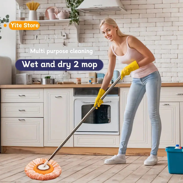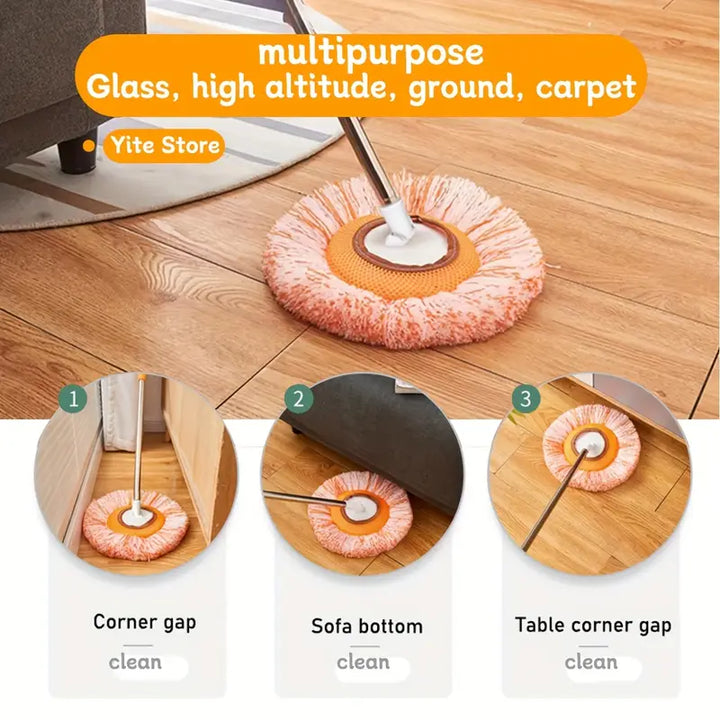ممسحة تنظيف دوّارة 360° بمقبض طويل (برتقالي)