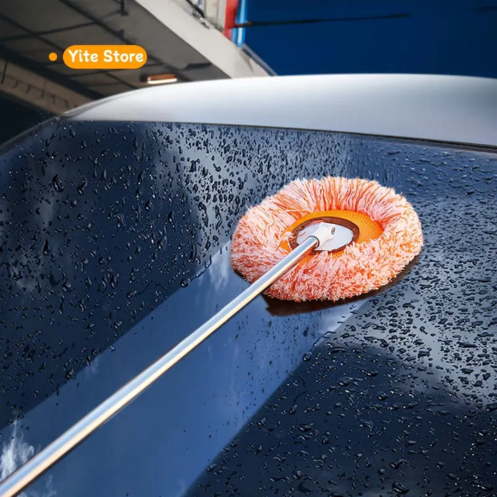 تأتي الممسحة مع مقبض طويل قابل للتمديد بثلاث مراحل لتناسب احتياجاتك وتسهّل الوصول إلى الأماكن العالية دون عناء.