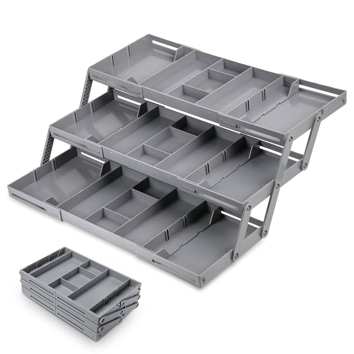 منظم أدراج ذكي قابل للطي بثلاث طبقات – منظم متعدد المستويات للمكياج والمجوهرات واللوازم المكتبية