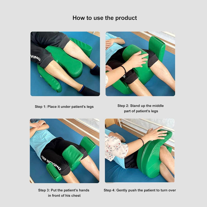 كل ما عليك هو وضع أرجل المريض داخل الوسادة ثم دفع ظهره بخفّة أثناء تحريك الوسادة لتغيير وضعه بأمان.